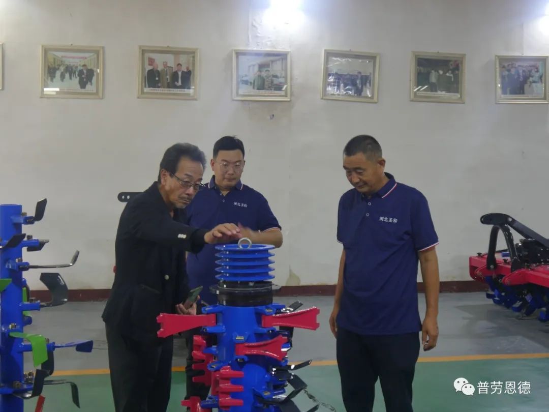 在圣和公司董事長(zhǎng)王新芳的陪同下,大坂社長(zhǎng)參觀了圣和公司農(nóng)機(jī)具的生產(chǎn)過(guò)程,并對(duì)圣和公司的生產(chǎn)管理、制造工藝、質(zhì)量管控等各生產(chǎn)環(huán)節(jié)進(jìn)行了全面、深入的了解。