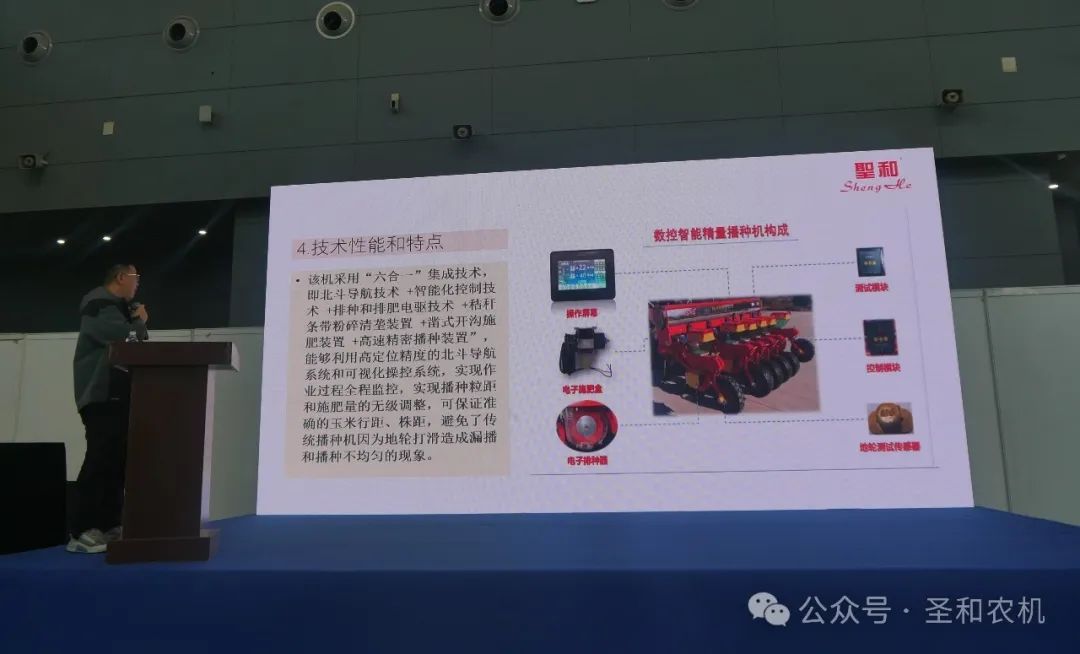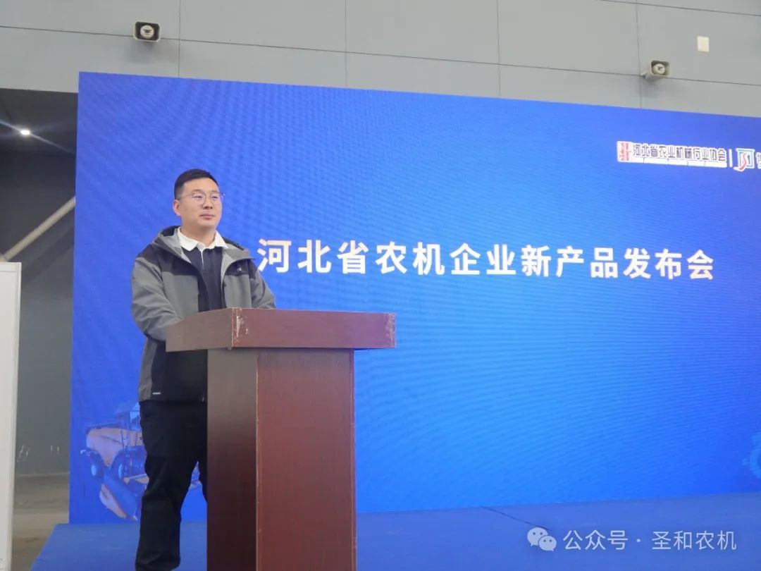圣和公司副總經(jīng)理王帥在展會期間由河北農(nóng)業(yè)機械行業(yè)協(xié)會主辦的“河北省農(nóng)機企業(yè)新產(chǎn)品發(fā)布會”中,詳細介紹了圣和公司推出的兩款新品“2BMQ-4/6玉米清壟免耕智能播機”和“1CMJ-200B型殘膜回收與秸稈粉碎還田聯(lián)合作業(yè)機”。
