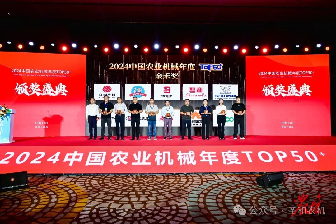 在“2024 中國農業(yè)機械年度 TOP50+”頒獎盛典上,圣和品牌再次蟬聯2024中國農業(yè)機械年度TOP50+“金禾獎”。
