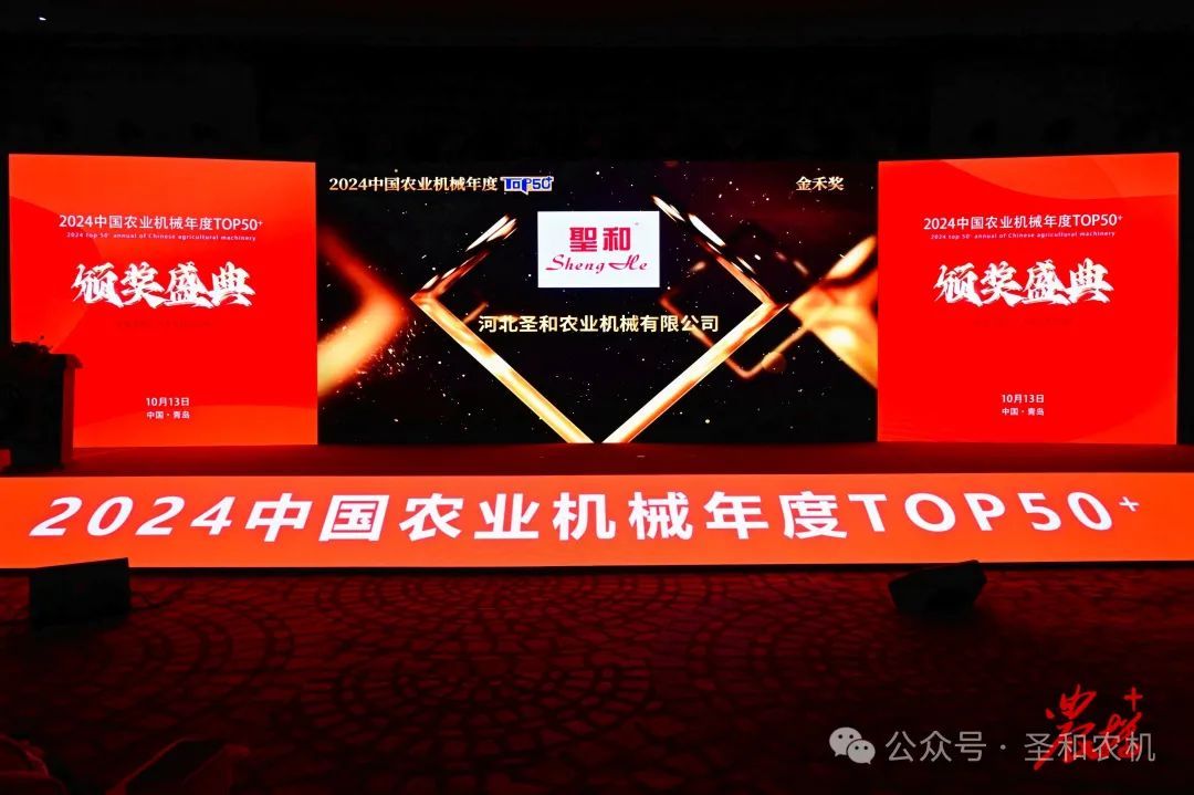 2024年10月12—14日,“2024第十二屆中國(guó)農(nóng)機(jī)高端論壇”在山東青島盛大召開(kāi)。同期還隆重舉行了“2024 中國(guó)農(nóng)業(yè)機(jī)械年度 TOP50+”頒獎(jiǎng)典禮,在頒獎(jiǎng)典禮上圣和品牌再次蟬聯(lián)“金禾獎(jiǎng)”殊榮。