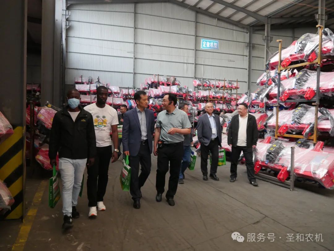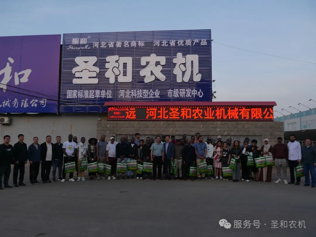 在考察過程中,河北圣和農(nóng)業(yè)機械有限公司營銷管理中心總經(jīng)理郭廣彥、副周經(jīng)理王周廣熱情接待了考察團,并詳細介紹了公司的發(fā)展歷程、產(chǎn)品線、技術(shù)創(chuàng)新成果以及在國際市場上的應(yīng)用情況??疾靾F成員們深入生產(chǎn)車間,實地觀摩了先進的農(nóng)業(yè)機械生產(chǎn)流程,對各類農(nóng)業(yè)機械的制造工藝和技術(shù)原理表現(xiàn)出濃厚的興趣。