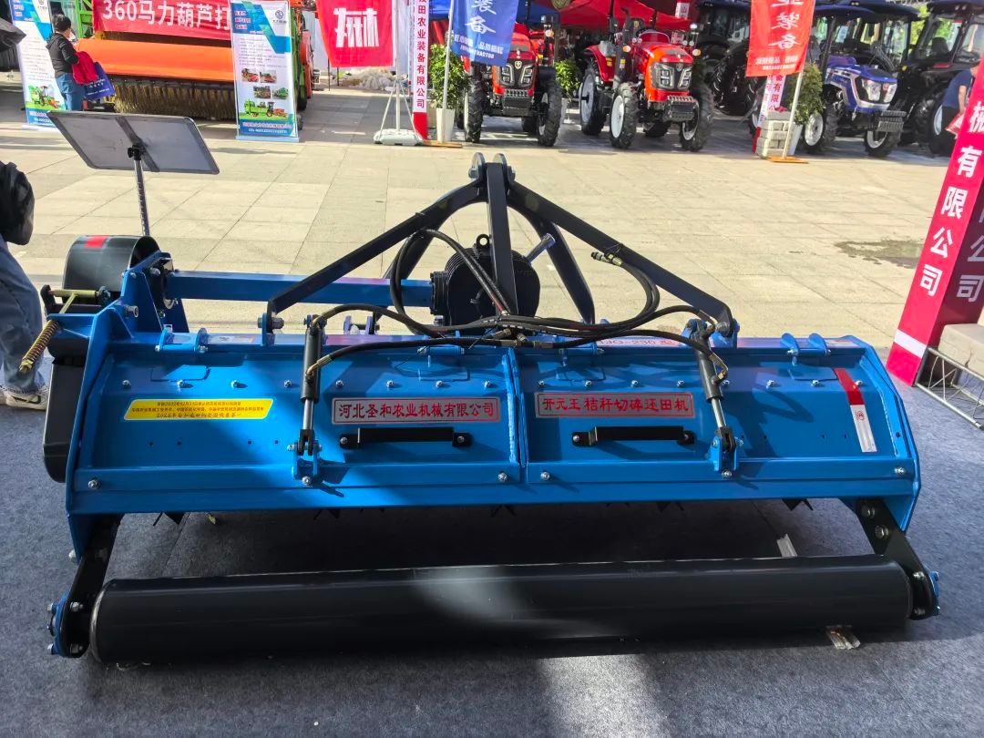 明星產(chǎn)品閃耀全場(chǎng)。在本次展會(huì)上,兩家企業(yè)帶來了一系列先進(jìn)的農(nóng)業(yè)機(jī)械設(shè)備。其中包括230A加高箱翻蓋還田機(jī),其獨(dú)特的加高箱翻蓋設(shè)計(jì),不僅方便了清理工作,還提高了作業(yè)效率;300型雙傳翻蓋還田機(jī),雙傳動(dòng)系統(tǒng)使得動(dòng)力傳輸更加穩(wěn)定,作業(yè)效果更加出色;450型配新式鎮(zhèn)壓輥特大高箱旋耕機(jī),配備的新式鎮(zhèn)壓輥能在旋耕后對(duì)土壤進(jìn)行有效鎮(zhèn)壓,使土地平整度和保墑效果更佳,滿足大規(guī)模農(nóng)田的高標(biāo)準(zhǔn)耕作需求;1CMJ - 200E型殘膜回收與秸稈粉碎還田聯(lián)合作業(yè)機(jī),集殘膜回收與秸稈粉碎還田功能于一體,有效解決了農(nóng)田殘膜污染和秸稈處理難題,符合綠色農(nóng)業(yè)發(fā)展的要求,被譽(yù)為"白色污染治理利器" 。
