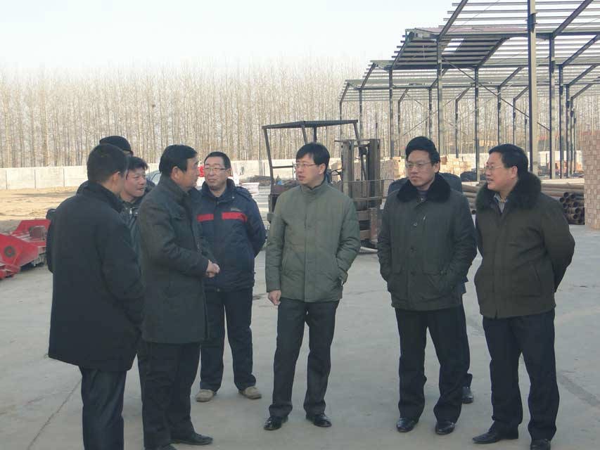 河南豪豐劉董事長(左三)、德州華北農機張總(左一)、定州開元白總(左二)到公司參觀、探討、調研