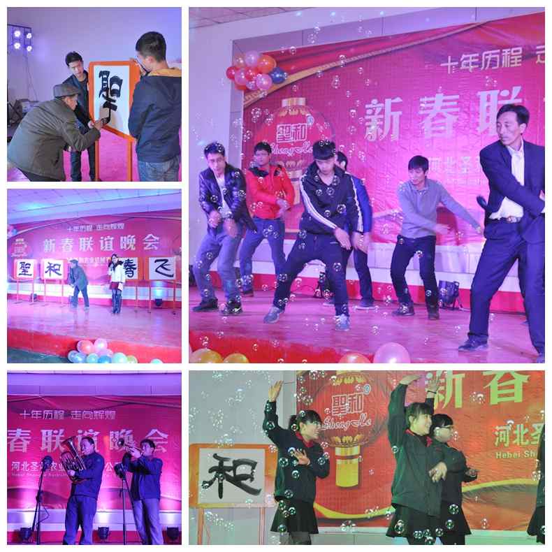 晚會在下午3點開始。首先播放了公司精心制作的公司宣傳視頻,回顧了公司的創(chuàng)業(yè)歷程和輝煌業(yè)績;隨后公司董事長王新芳、總經(jīng)理師西峰、副總經(jīng)理蘇山嶺一一發(fā)言,之后舉行了頒獎儀式,評選出了公司團隊獎、個人優(yōu)秀獎、技能比賽獎、拔河比賽等一系列獎項;隨后以公司中高層精心準備的《團結(jié)就是力量》這首歌拉開了帷幕,團結(jié)就是力量,這力量是鐵、這力量是鋼,比鐵還硬、比鋼還強,展現(xiàn)出了圣和公司2016年打造團隊建設的信心和決心。