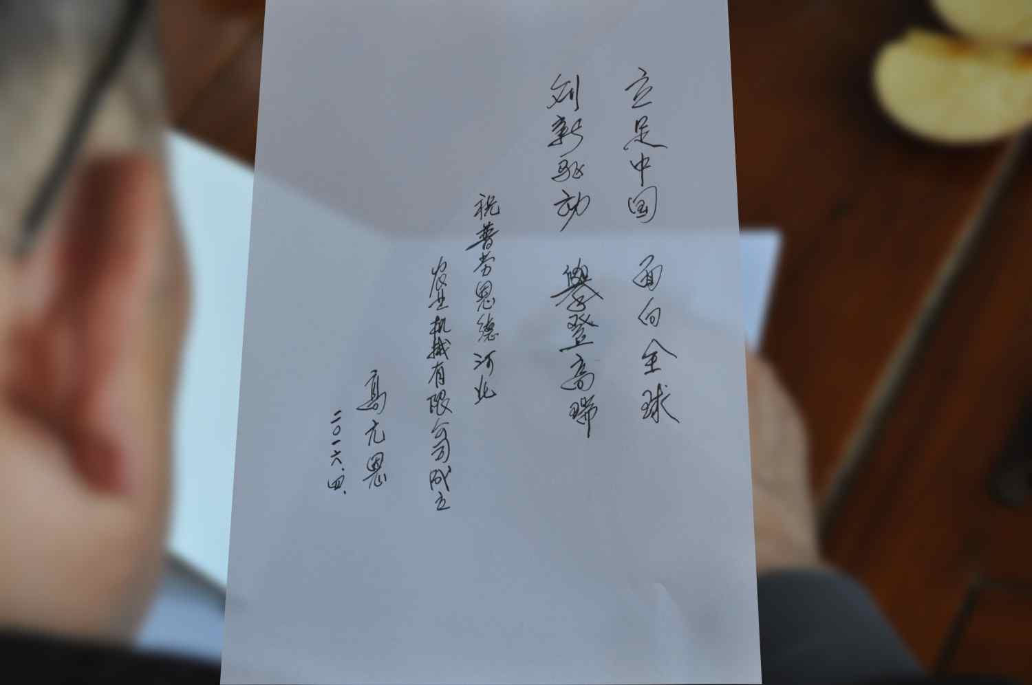 臨走時,高會長特意留字:立足中國 面向全球