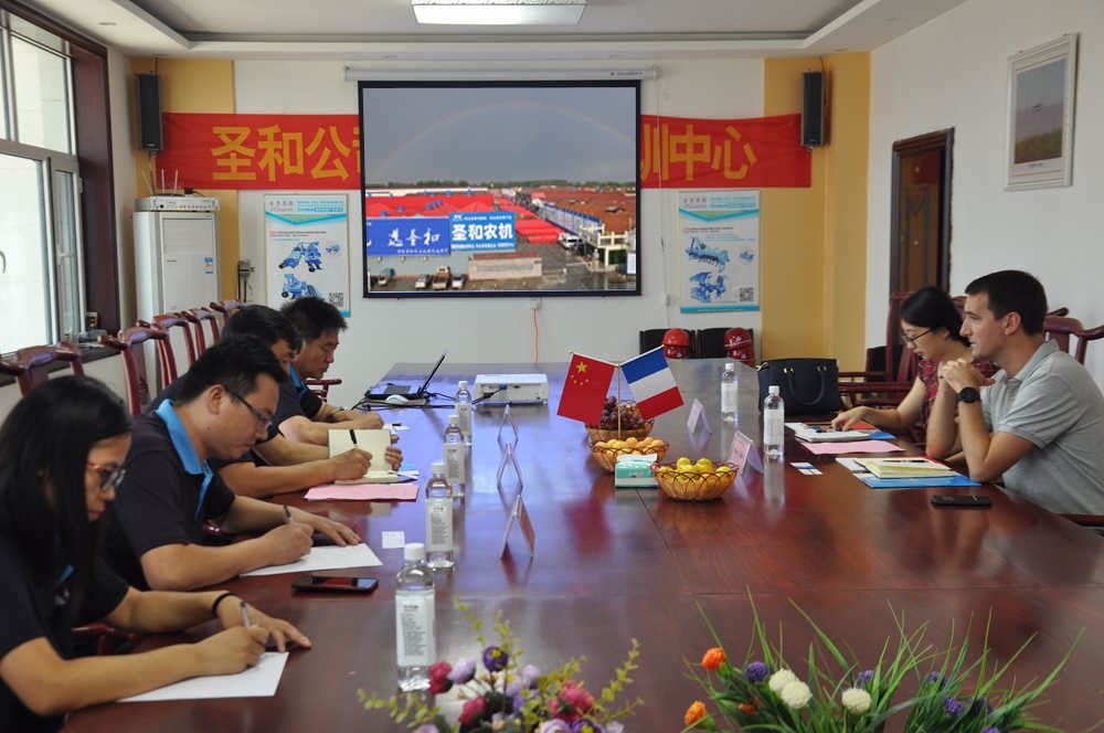 圣和公司董事長王新芳、總經(jīng)理師西峰熱情迎接并接待了Yannck Sellin先生。董事長王新芳詳細(xì)向Yannck Sellin先生介紹了圣和公司的發(fā)展歷程技術(shù)力量、產(chǎn)品和公司管理以及企業(yè)文化,通過企業(yè)宣傳片對(duì)圣和公司有更多的了解和認(rèn)識(shí),就國際國內(nèi)農(nóng)機(jī)行業(yè)與未來發(fā)展進(jìn)行了交流與溝通。隨后,在董事長王新芳及總經(jīng)理師西峰全程陪同下,Yannck Sellin先生參觀了日新月異的現(xiàn)代化生產(chǎn)車間,圣和公司因地制宜地加大農(nóng)業(yè)機(jī)械科技創(chuàng)新與研發(fā)投入,發(fā)展現(xiàn)代化農(nóng)業(yè)機(jī)械設(shè)備,保障農(nóng)業(yè)機(jī)械的不斷創(chuàng)新,追求品質(zhì)卓越,推動(dòng)農(nóng)業(yè)發(fā)展。