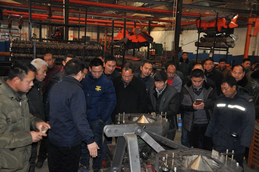 在裝配車間的旋耕機(jī)和打漿機(jī)裝配流水線旁,學(xué)員們對裝配工藝同樣饒有興趣。尤其是看到旋耕機(jī)刀片在出廠前已經(jīng)裝配完善,學(xué)員們表示贊揚(yáng)。在過去,為了方便運(yùn)輸,刀片是在經(jīng)銷商那里裝配的,往往容易出現(xiàn)錯裝刀片,螺栓緊固不合格等問題!在參觀到圣和公司的成品倉庫時(shí),學(xué)員們仿佛來到旋耕機(jī)的海洋,工作人員介紹說,圣和公司為適應(yīng)全國市場需要,在產(chǎn)的產(chǎn)品就有200多種,多數(shù)型號的產(chǎn)品都能做到隨時(shí)供貨。學(xué)員們被不同顏色和型號的產(chǎn)品深深吸引著,無不驚訝無比,并在此合影留念,記錄這次非凡之旅!