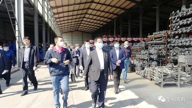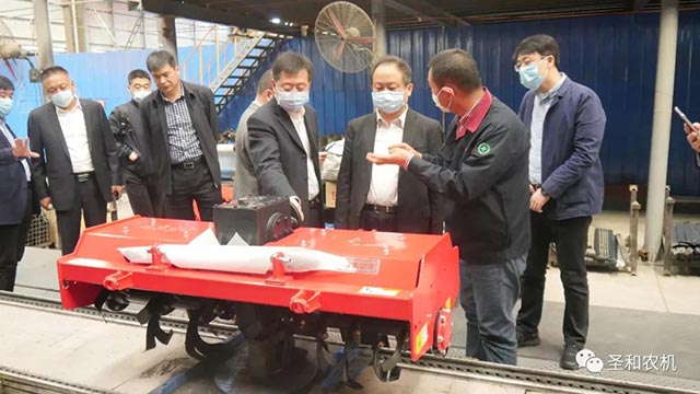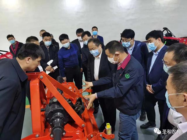 在參觀考察過程中,董事長(zhǎng)詳細(xì)介紹每一個(gè)生產(chǎn)制作環(huán)節(jié),不同農(nóng)機(jī)的作用與特點(diǎn),參觀完畢后領(lǐng)導(dǎo)對(duì)圣和公司的管理模式、生產(chǎn)工藝等給予高度評(píng)價(jià),并給出了提升建議。