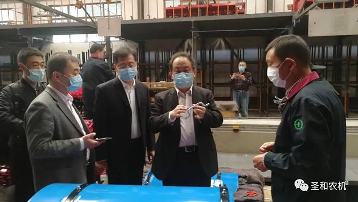 6月1日,河北省農(nóng)業(yè)機(jī)械化管理局戎美瑞局長(zhǎng)、張局長(zhǎng),河北省鑒定總站孫站長(zhǎng),河北省推廣總站史站長(zhǎng)一行到圣和公司調(diào)研指導(dǎo)工作。領(lǐng)導(dǎo)們關(guān)注疫情期間圣和生產(chǎn)情況,對(duì)公司的生產(chǎn)管理與產(chǎn)品工藝給予了高度肯定,同時(shí)也對(duì)我公司進(jìn)一步的提升給出了建議。