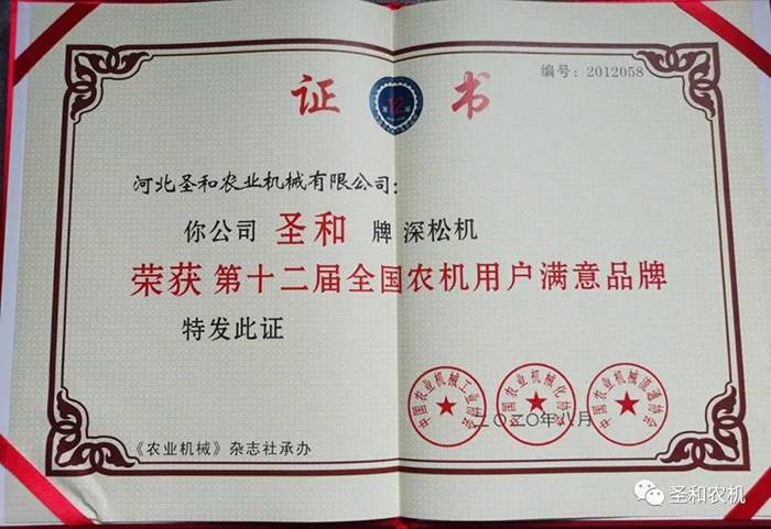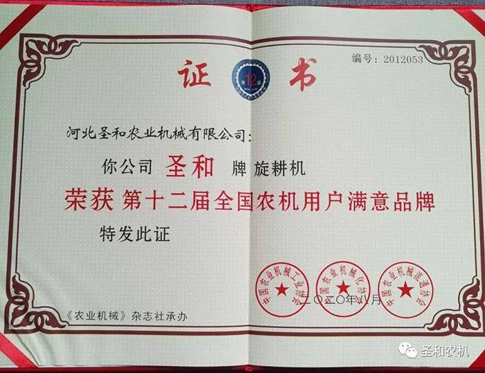 四、全國(guó)農(nóng)機(jī)用戶滿意品牌——圣和再獲大獎(jiǎng)!