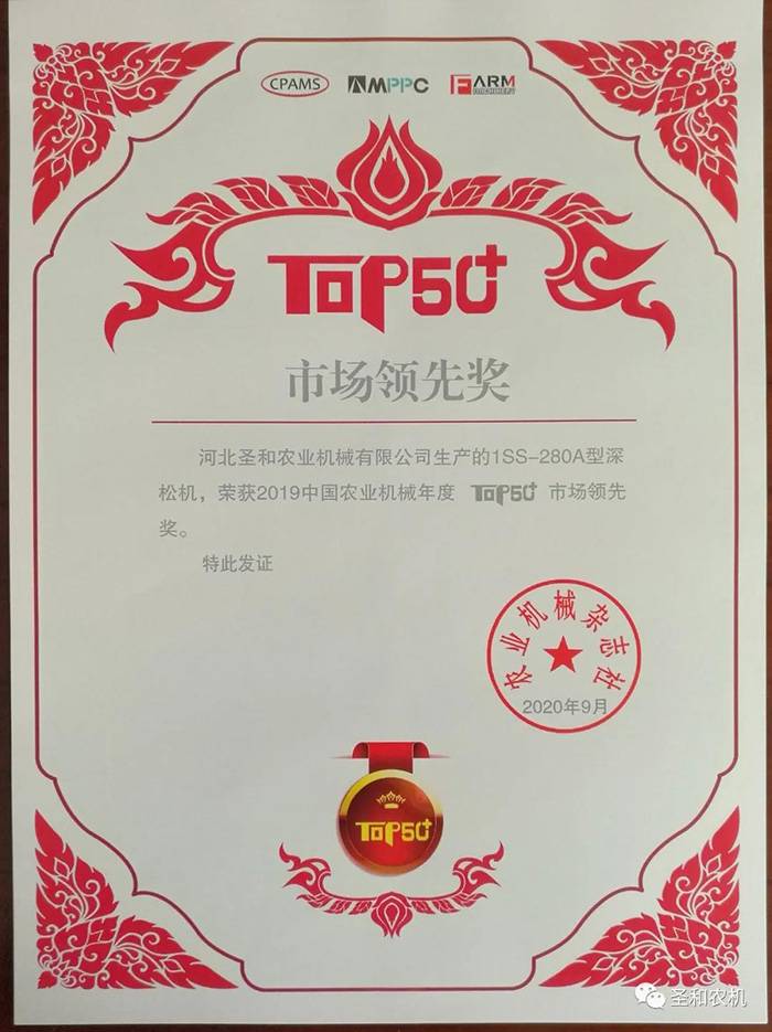 9月27日,2020年第八屆中國(guó)農(nóng)機(jī)高端論壇(CAIF 2020)暨 2019 中國(guó)農(nóng)業(yè)機(jī)械年度 TOP50+頒獎(jiǎng)盛典”在北京舉辦。大會(huì)期間圣和公司產(chǎn)品1SS-280A型深松機(jī)榮獲“市場(chǎng)領(lǐng)先獎(jiǎng)”。