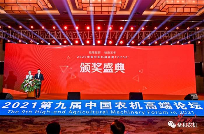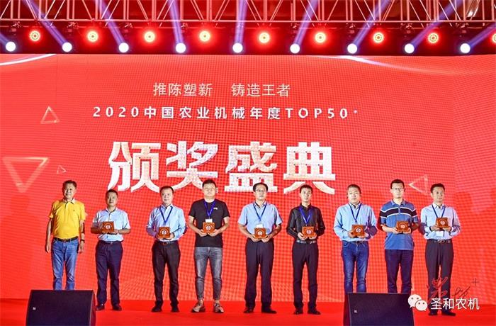 河北圣和農業機械有限公司榮獲2020中國農業機械年度TOP50+最具影響力自主品牌“金禾獎”,河北圣和農業機械有限公司營銷管理中心總經理郭廣彥上臺領獎。