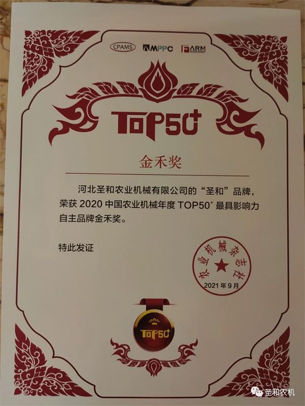 金禾獎獲獎品牌是頒發給快速成長、健康發展的自主品牌,圣和農機近年來專注細分市場,以創新為驅動力,力求為廣大用戶提供靠譜的農機具,讓客戶買的放心,用的稱心。評選獲獎是大家對圣和的肯定與支持,我們將更加努力,創造更優質的產品與服務。
