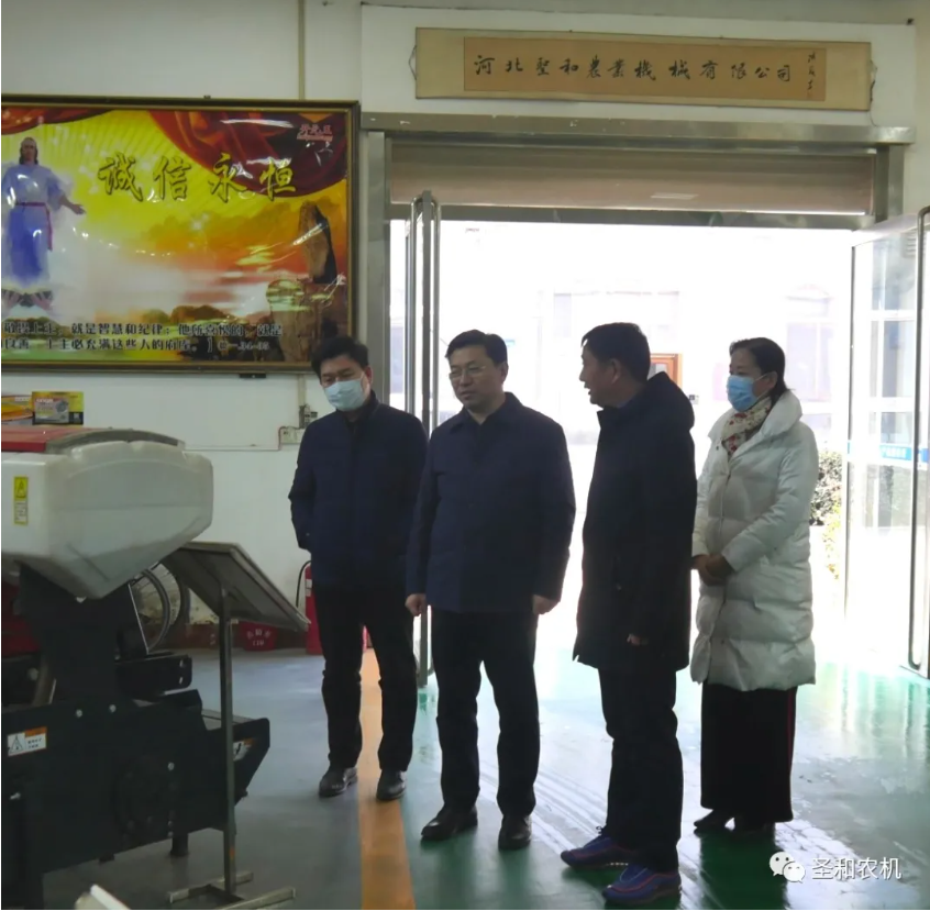 2022年2月16日,河北省農機局戎局長,劉副局長,省推廣總站史站長,邢臺市趙局長蒞臨圣和公司調研!公司董事長王新芳熱情接待!