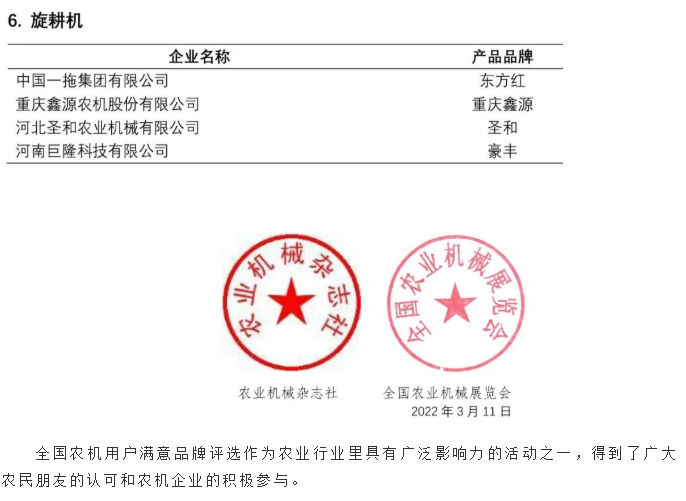 農機用戶滿意品牌(CSI)”評選活動,經過企業線上申報、網上投票點評、專家評審,共