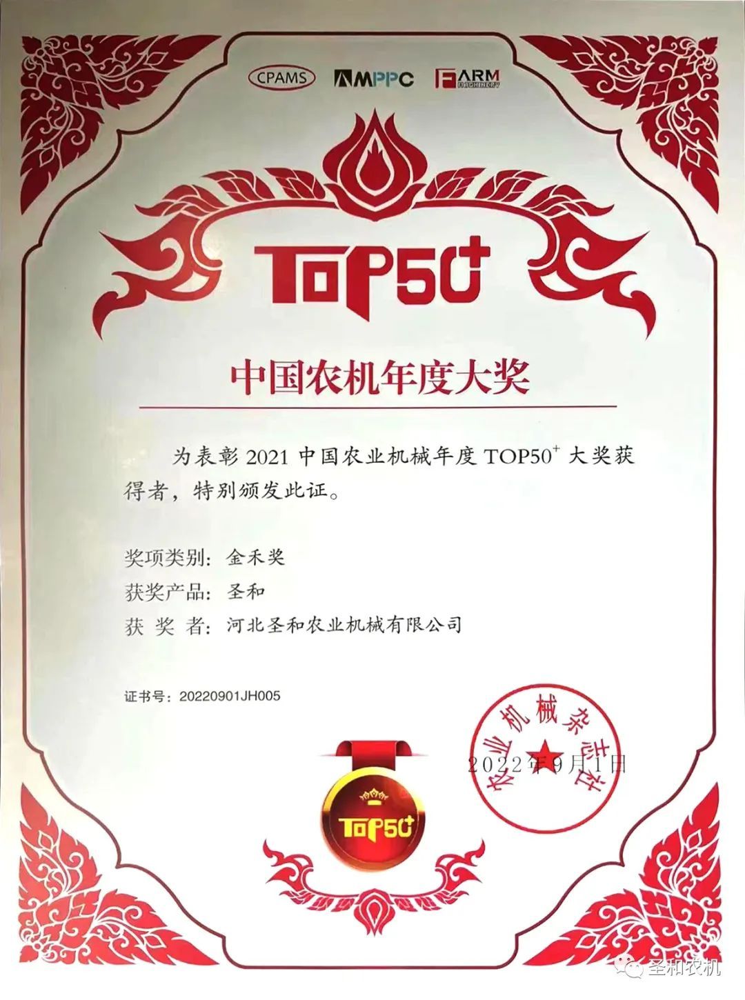●圣和品牌榮獲2020年中國農(nóng)業(yè)機(jī)械年度TOP50+最具影響力自主品牌金禾獎。第二個五年規(guī)劃正在實(shí)施中,隨著中國市場的不斷優(yōu)化,圣和農(nóng)機(jī)多年潛心鉆研而成的優(yōu)勢逐漸顯現(xiàn)。由于良好的產(chǎn)品質(zhì)量和營銷服務(wù),公司的產(chǎn)品贏得全國各地用戶的普遍認(rèn)可,有多款產(chǎn)品的銷售量排名在全國的前列。